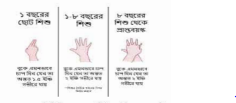 • বুক চাপতে তোমার দুটি আঙ্গুল ব্যবহার কর যেন শিশুর বুকের গভীরতার অন্তত ১ ইঞ্চি নিচে দেৰে যায়৷